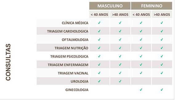 Confira abaixo a lista completa de consultas e exames disponíveis: